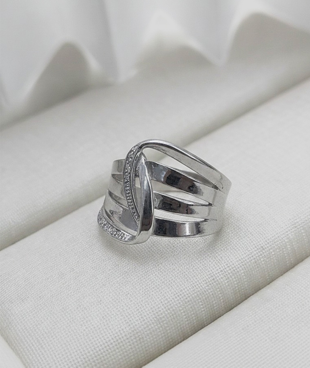 Anel trançado zirconia cravejada em prata 925 banhado a rodio de ouro branco