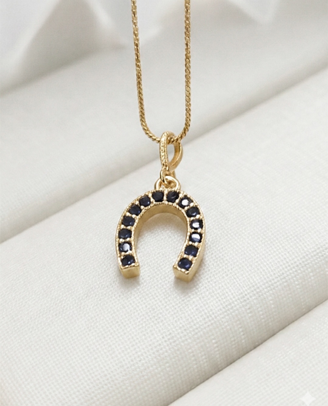 Colar ferradura zircônia azul marinho cravejada em prata 925 banhado a ouro 18 k.